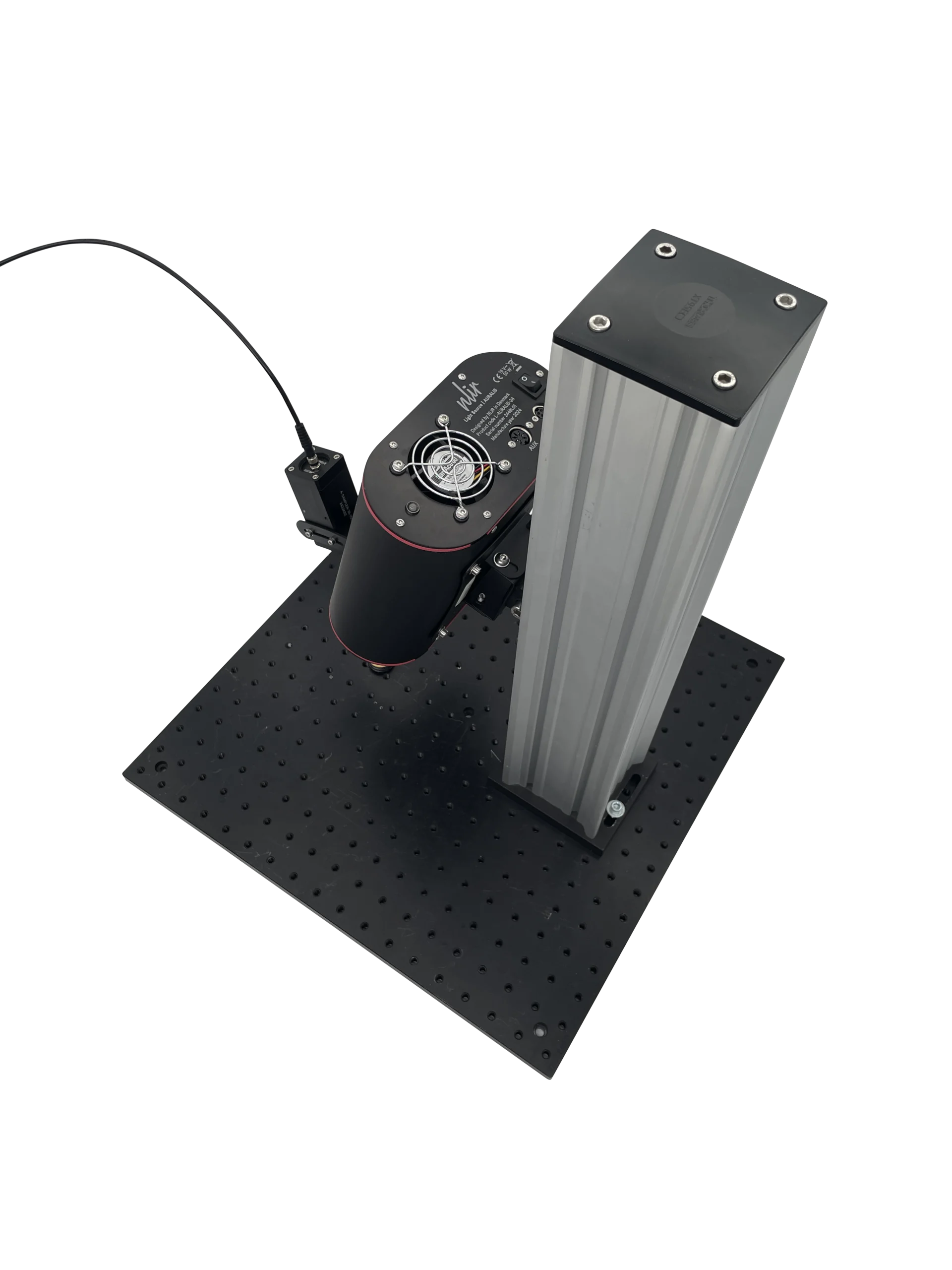 It consists of two independent products AURALIS Light Source and SAMPLER Accessory. Designed to be fiber-coupled with MIDWAVE Spectrometer, this interface allows you to perform reflection measurements at a 15° angle, 13.3 cm distance. Mounting NLIR’s REFLECTION Interface on a stand in your production line allows you to perform reflection measurements at scale, in real time.