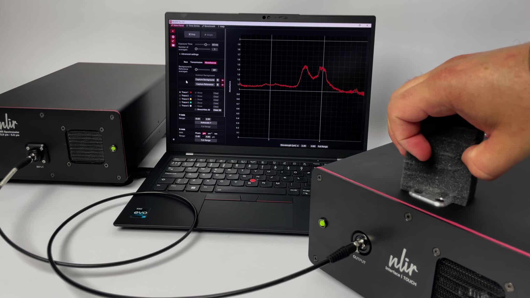 This sample is usually too thick for transmission and must be measured in reflection. Reflection measurements are often very sensitive to the surface roughness and the amount of reflected light can vary significantly. However, the reflected light holds a lot of information. You can achieve outstanding data acquisition results with NLIR TOUCH Interface regardless of the surface properties.