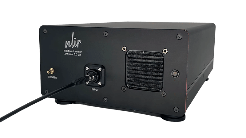 Developers in both industry and research use mid-infrared (MIR) spectrometers for non-invasive characterization of gases, liquids, and solids as well as characterization of light sources. NLIR specializes in manufacturing 2.0 – 5.0 µm spectrometers based on a novel measurement scheme that upconverts the MIR light to near-visible light. Silicon-based near-visible light detectors are far superior to MIR light detectors in terms of detectivity, speed, and noise. The NLIR upconversion technology, therefore, brings these attractive features and the advantages that follow, to the MIR regime.