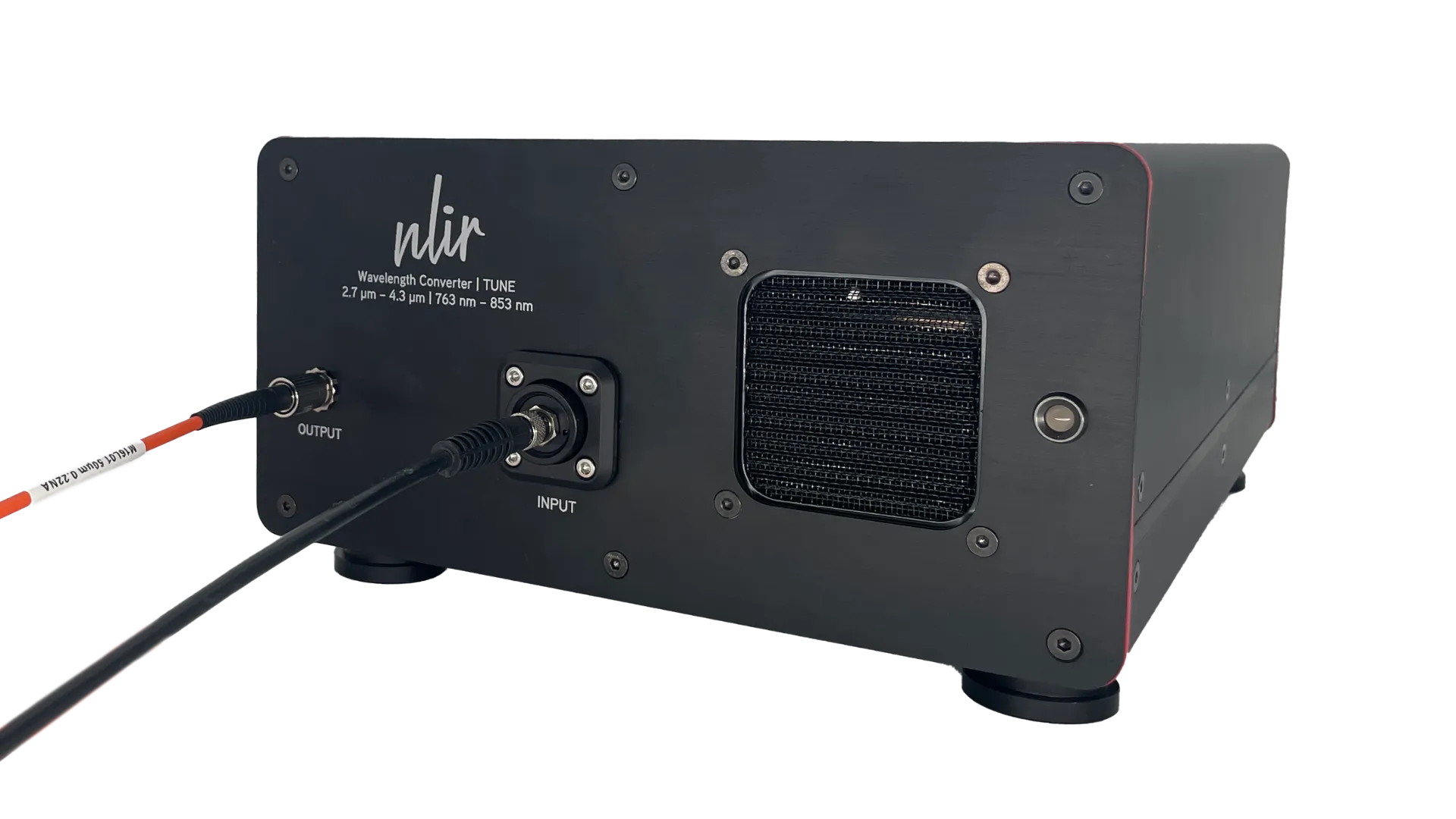 The core of NLIR’s technology is the wavelength conversion module, which upconverts mid-infrared wavelengths to the near-visible range, enabling the use of Si and GaAs detectors. The conversion is driven by a high-power, continuous-wave 1064 nm laser inside a lithium niobate crystal. Everything is integrated and no alignment is necessary.